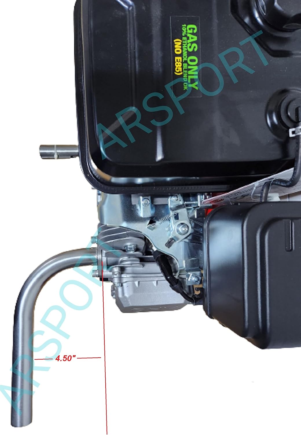 Good for: Mini bikes, go karts, generators... multipurpose. This been tested on: Predator Max 459, Duro XP16HPE 420cc, Duro XP18HPE 457cc, Predator 8HP (301cc) OHV, Predator 13 HP (420cc) Engine from harbor freight. Made in U.S.A. There is no paint on this Exhaust, the material is polished mild steel, if you want I can sandblast it at no cost (Send me a separate message at the time of the order) you can paint it any color you like, I recommend rust Oleum 2000f, you have to order it separately .