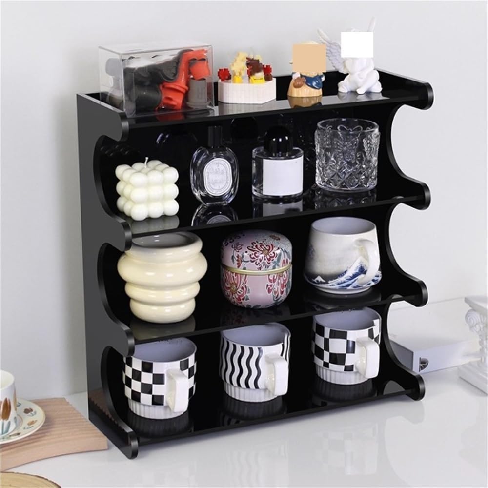 Size: Length: 41.6cm (16.4in)Width: 15cm (5.9in)Height: 29.5/42.5cm (11.6/16.7in)Is Assembly Required:NOThis multi-layer acrylic coffee cup holder is designed to bring order and modern glace to your daily routine. Made from premium acrylic, it offers a sturdy structure with a sleek, transparent finish that complements a wide range of interior styles.Available in both two-layer and four-layer configurations, this modern mug rack for kitchen use maximizes vertical space and reduces surface clutter. It is excellent for organizing coffee mugs, cups, and accessories without taking up excessive room.As a minimalist makeup organizer, it also works beautifully in bathrooms or bedrooms, providing convenient storage for cosmetics, toiletries, or skincare essentials. Its versatile design allows it to transition effortlessly between kitchen, living room, bathroom, and office environments.Both practical and visually refined, this acrylic organizer enhances everyday spaces by combining efficient storage with minimalist design. Reminder:1.Other items on the product are for display only and are not included in the product.2.As the product is measured manually, please refer to the actual product, thank you for your understanding.3.Due to different monitors, there will be a certain color difference in the product, please refer to the actual product.