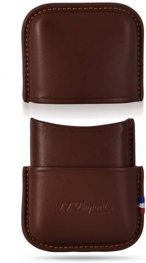 Line 2 lighter case made of smooth cowhide leather. S.T. Dupont embossed and blue white red stitching signature. Can contain a line 2 lighter.